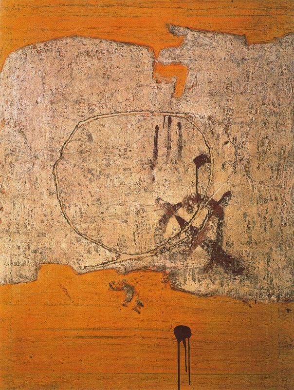 Se trata de un extracto de su cuento Grafitti, una estupenda pieza de apenas cinco páginas y dedicada al pintor catalán Antoni Tàpies, a quien pertenece la obra que ilustra esta entrada (Blanco con manchas rojas, 1954). El cuento narra la breve relación que se establece entre dos habitantes de una sociedad censurada, obligados a emplear el grafitti como única manera de comunicación aun a riesgo de perder sus propias vidas, ya que el grafitti, cómo no, también está prohibido. Es, en definitiva, una estupenda apología de la libertad de expresión, en la que la comunicación se muestra como la única manera de humanizar las relaciones entre los diferentes miembros de una comunidad y, en fin, un tesoro por el que merece la pena jugársela a una carta.